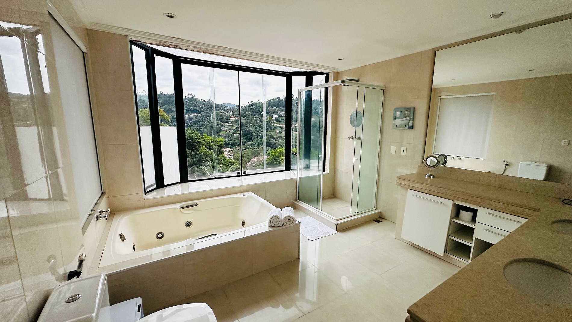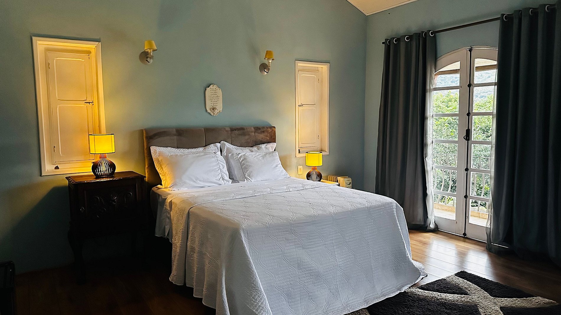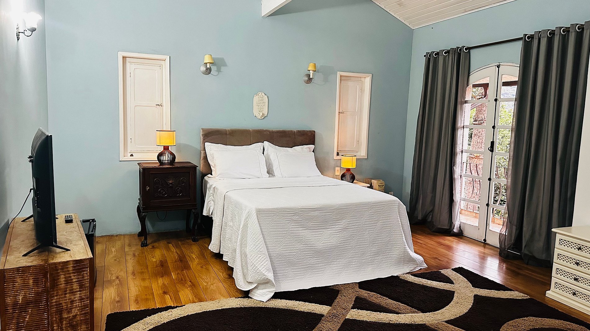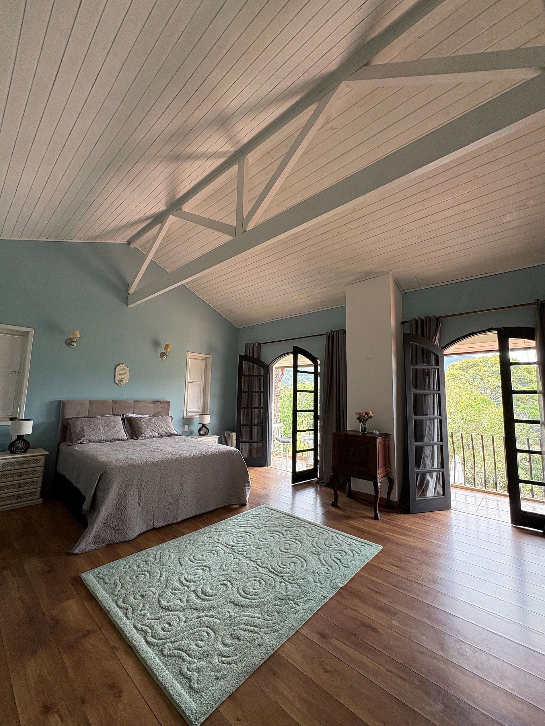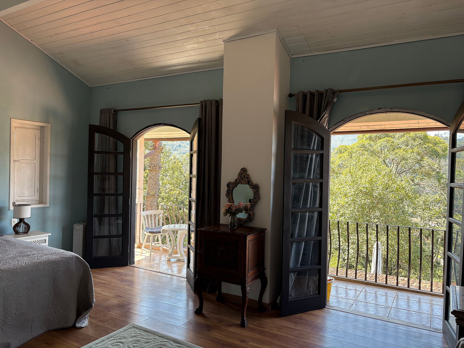 Suíte extremamente confortável e espaçosa com varanda, hidromassagem dupla, e uma vista linda para as montanhas. Venha desfrutar de muita paz, natureza e diversão! Estamos a 15 minutos do centro (de carro), ônibus passa de meia em hora para o centro, e um uber/99 para o centro custa em media 15 reais P.S. Estamos tomando todas as medidas de segurança contra o Covid19
